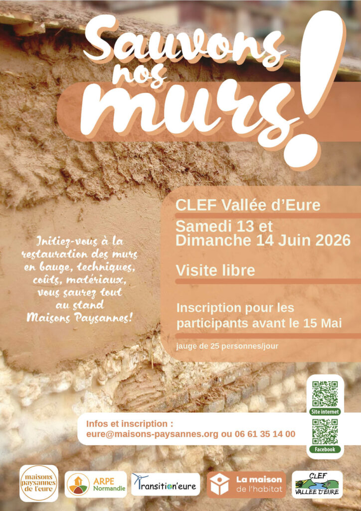 Les associations Maisons paysannes de l’Eure, l’ARPE Normandie, La Maison de l’Habitat, la commune de CLEF Vallée d’Eure et l’association Transition’eure, vous proposent cet atelier autour de la restauration des murs en bauge.