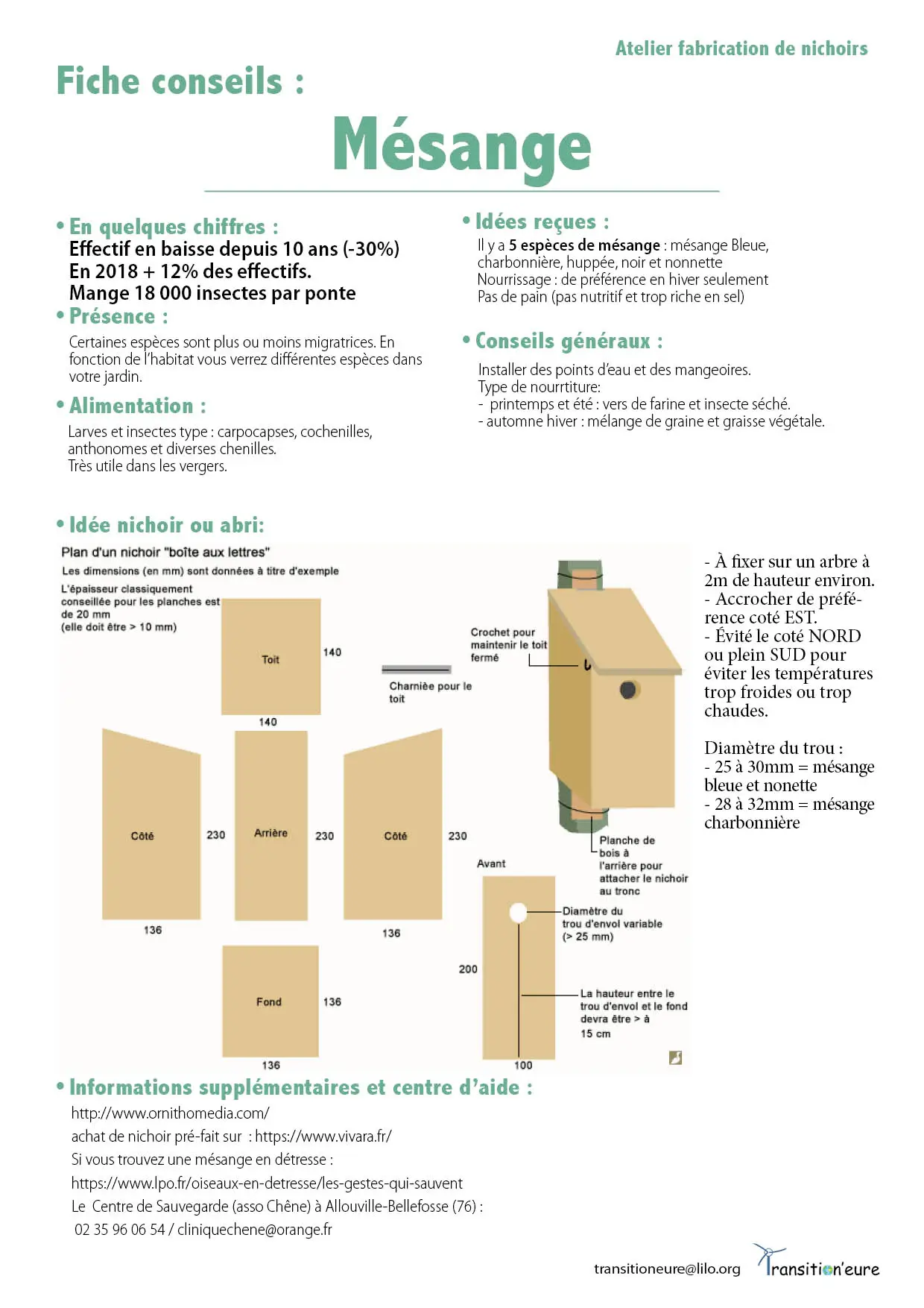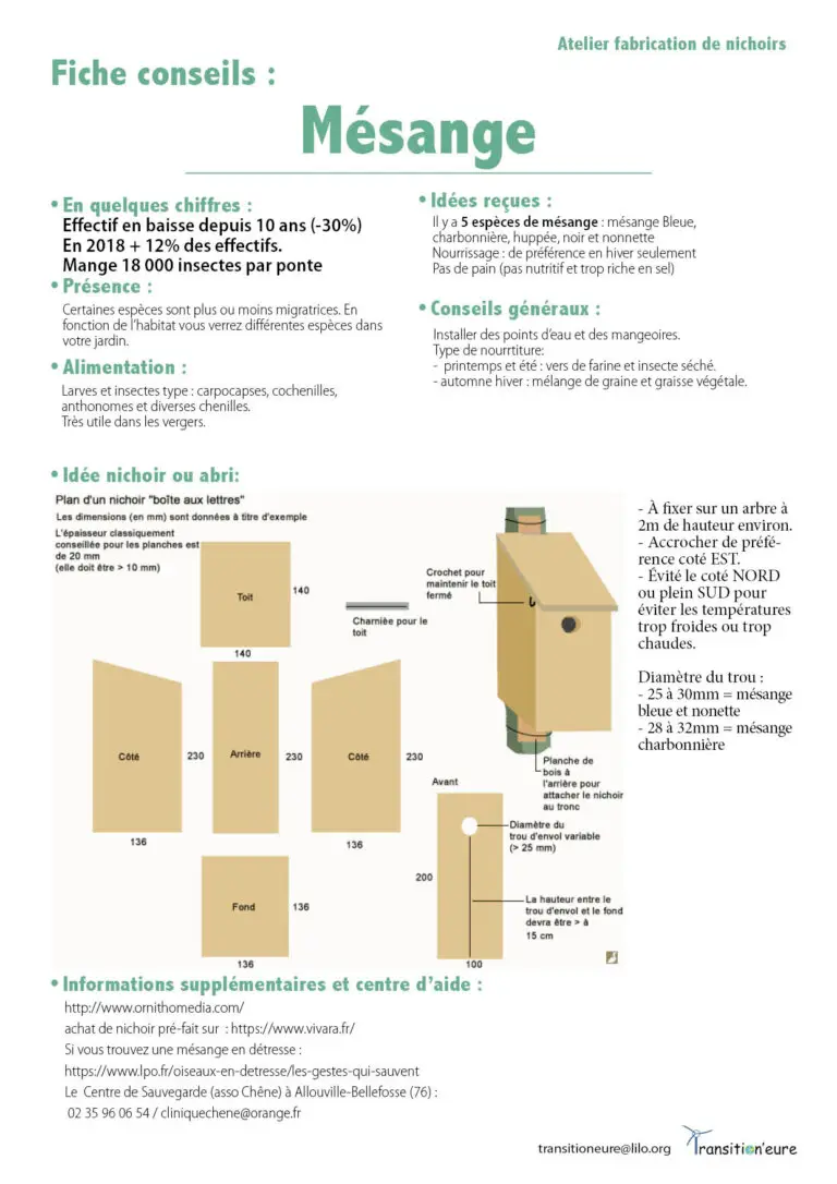 Réservation obligatoire (les kits nichoirs sont fabriqués par nos soins, en bois épais non-traité)